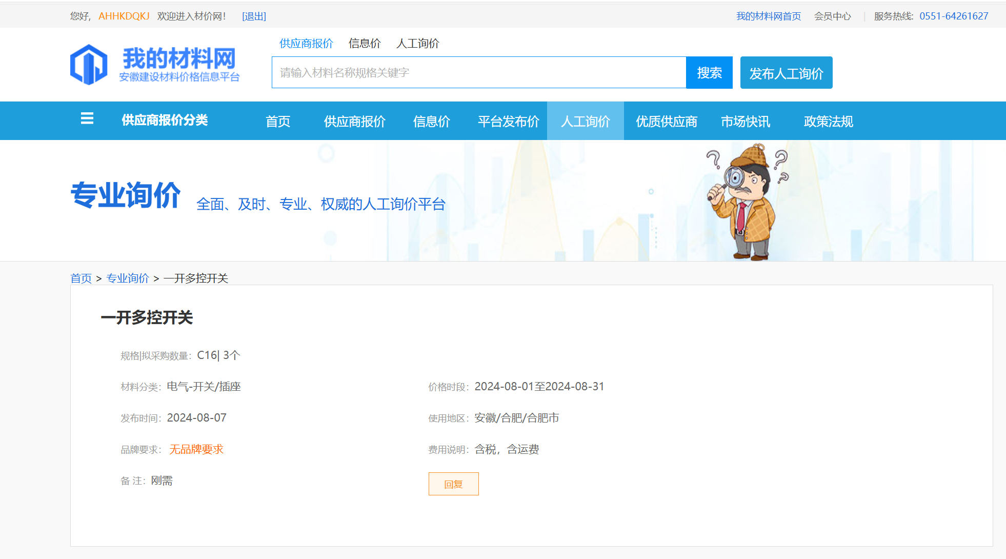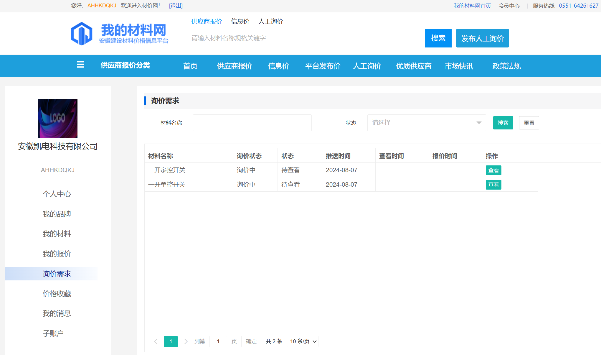 会员中心->询价需求