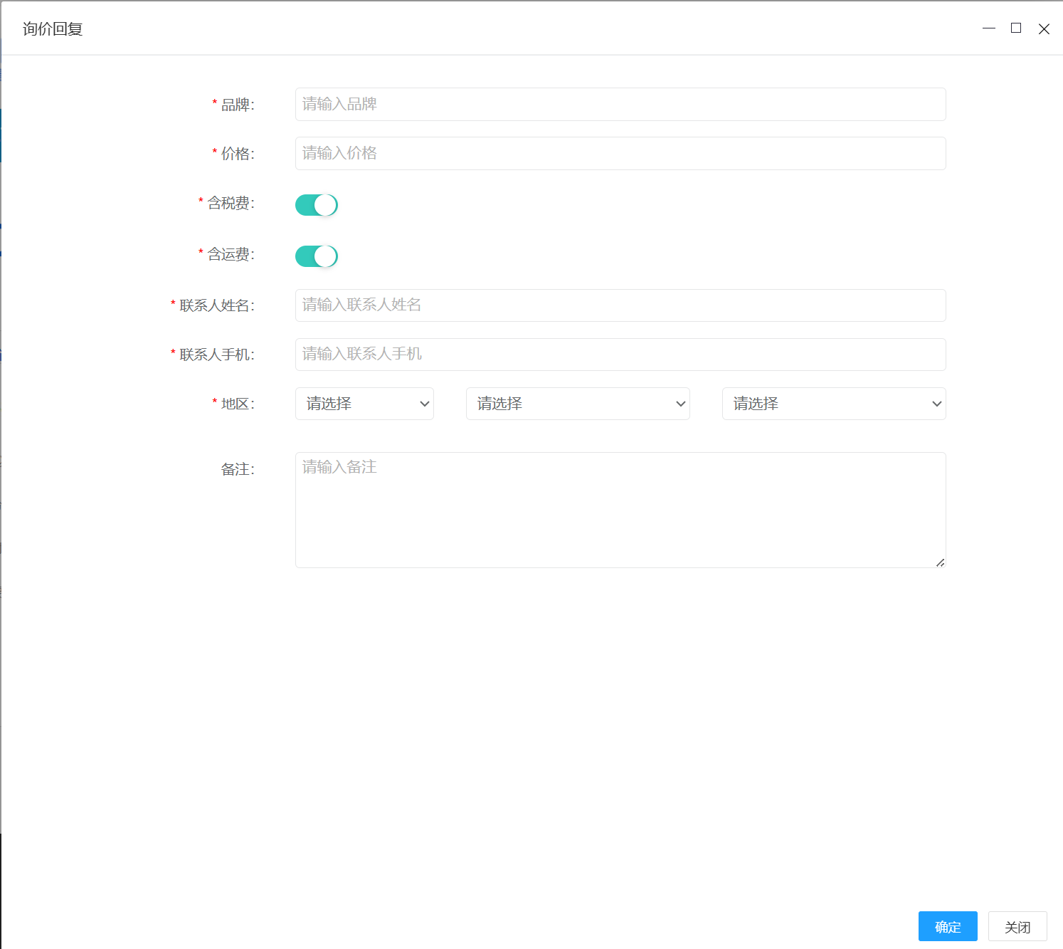 三、回复:填写询价回复数据。注意:带有*标识的,为必填数据