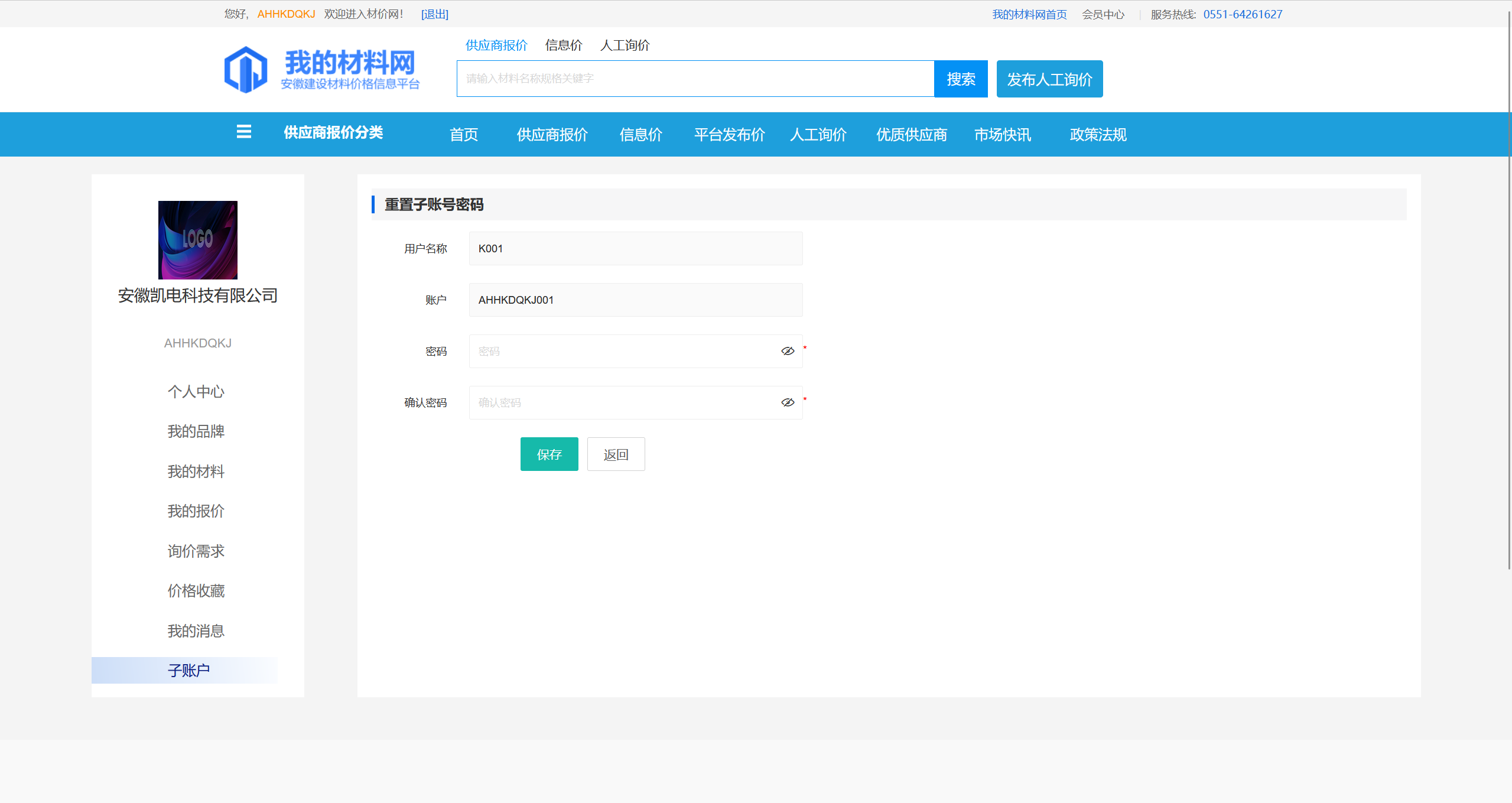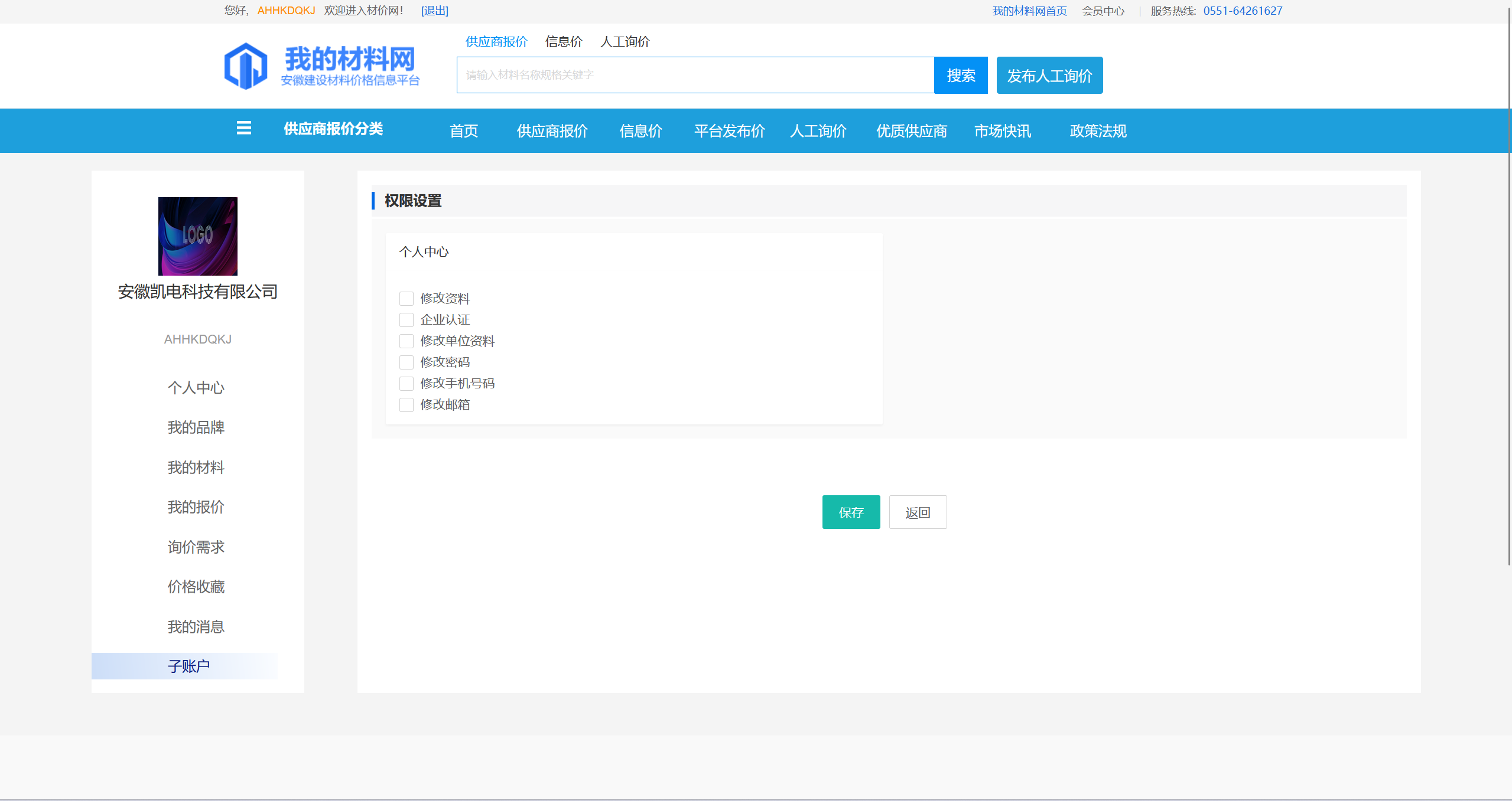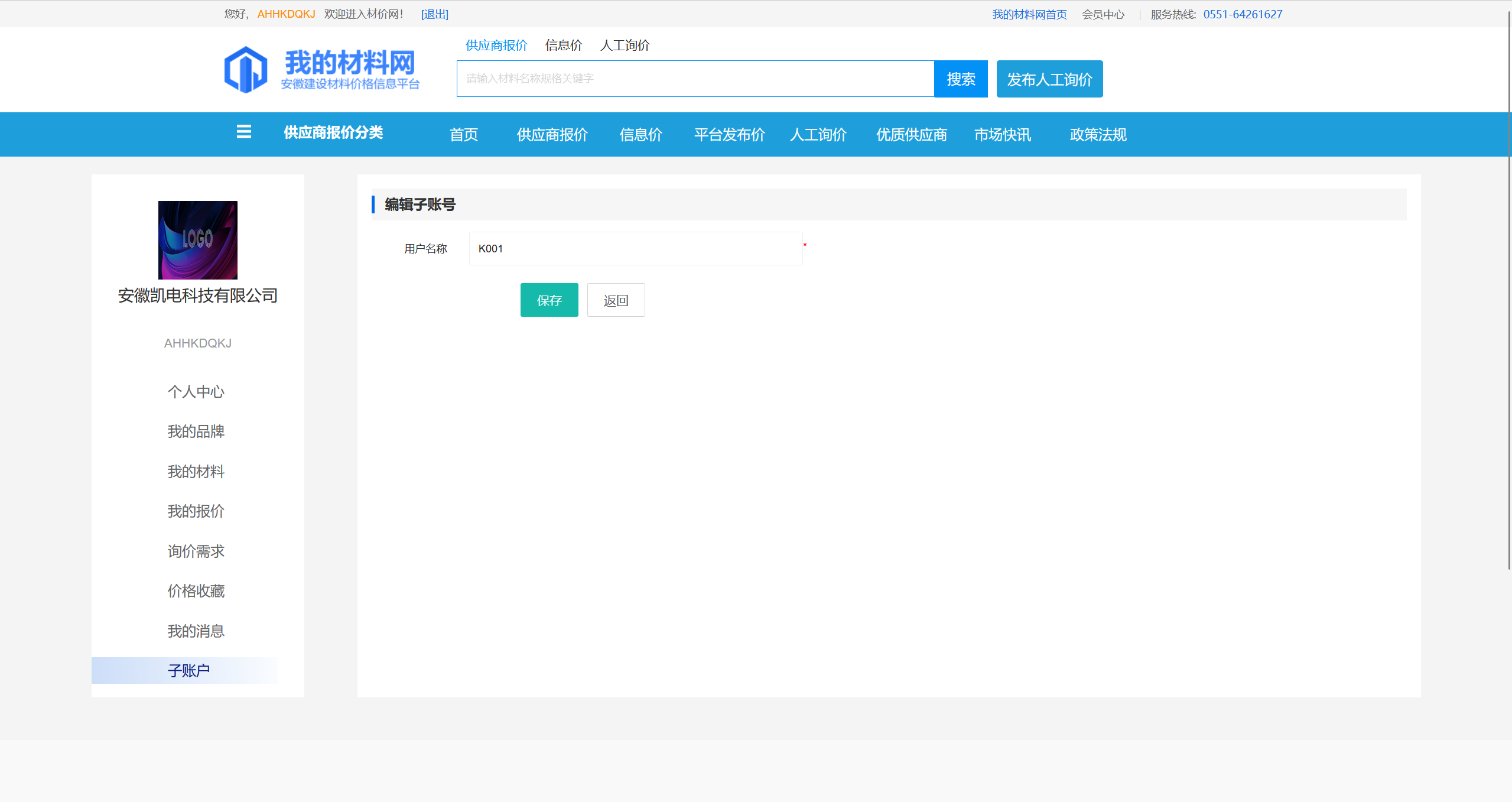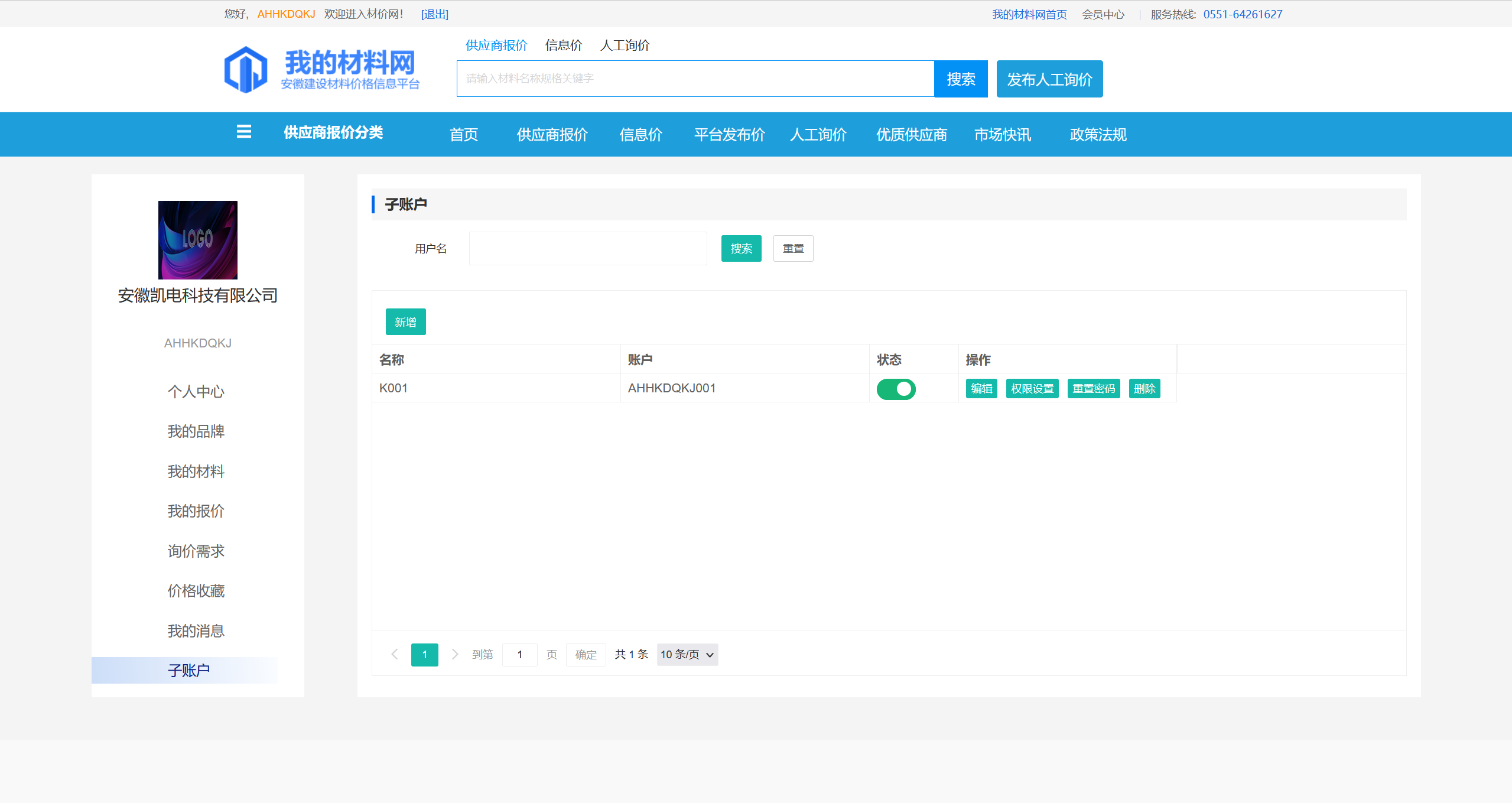 二、编辑,通过列表开关按钮,控制当前子账号状态,可通过编辑页面更改用户名称