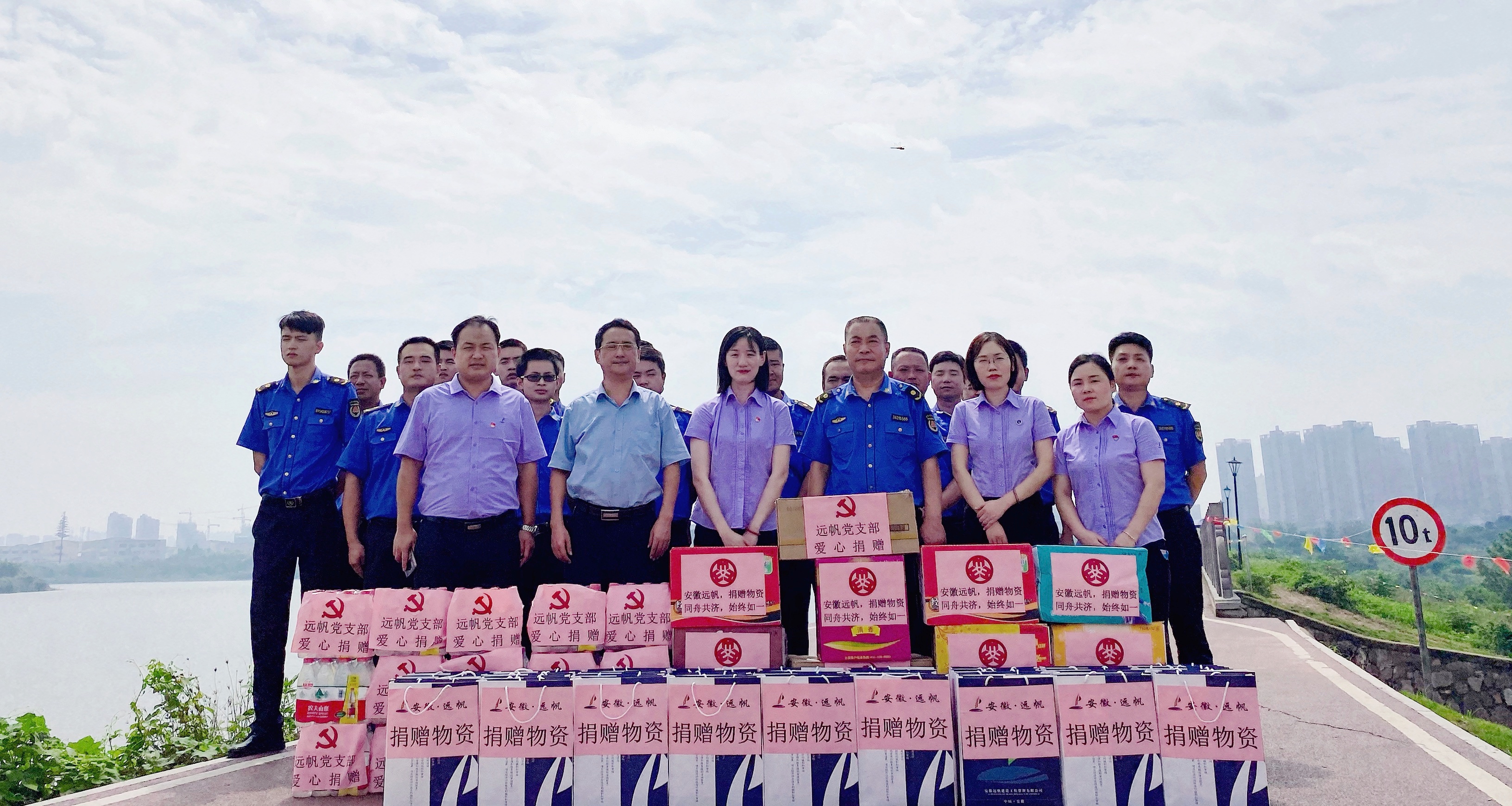 今年入梅以来,我省多地连降暴雨,洪涝灾害严重,防汛形势异常严峻。一线抗洪救灾工作人员日夜坚守,巡查排险,大坝旁忙碌的身影,牵动着我们的心!汛情当前,安徽远帆党支部第一时间响应号召,主动承担社会责任。7月31日,在党支部书记慈妍的带领下,置办捐赠物资,为坚守一线的城管队员们送去矿泉水、方便面、洗漱用品等物资,送上一份温暖!园区党工委委员、管委会副主任许王熙正在向远帆党支部介绍园区防汛具体举措。党支部书记慈妍表示:组织这样的物资捐赠活动是希望能尽一些绵薄之力,发挥党员的先锋模范作用,承担起社会责任,同时希望带动更多爱心企业参与进来,向社会传递正能量!