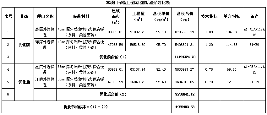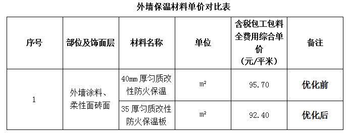 综上,高层及洋房外墙保温材料优化后单价节约3.3元/㎡。