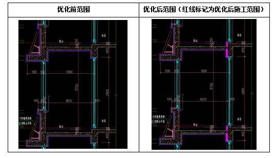 原设计图纸中飘窗板空腔部分均有保温层,优化后取消空腔内侧保温层。