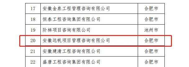 喜讯丨热烈祝贺远帆咨询公司成功入围2022年度安徽省工程造价咨询营业收入前二十强企业